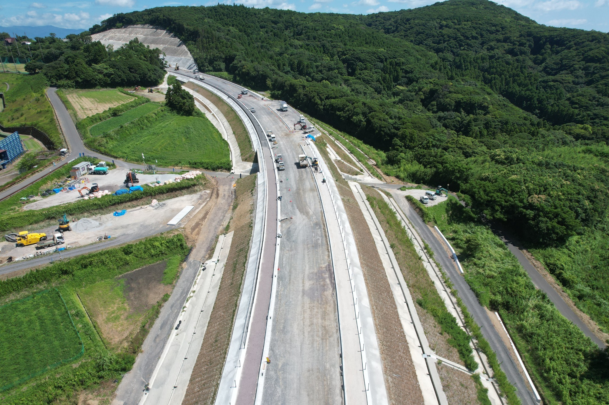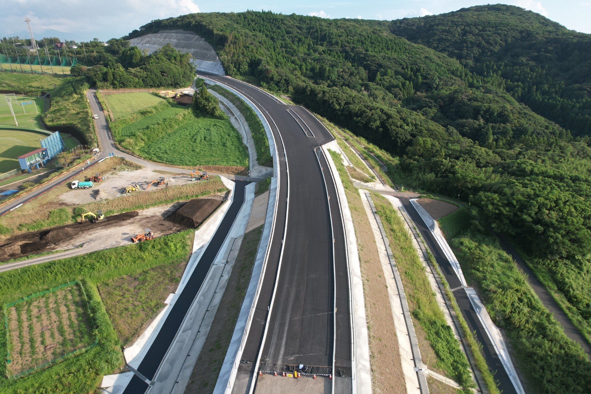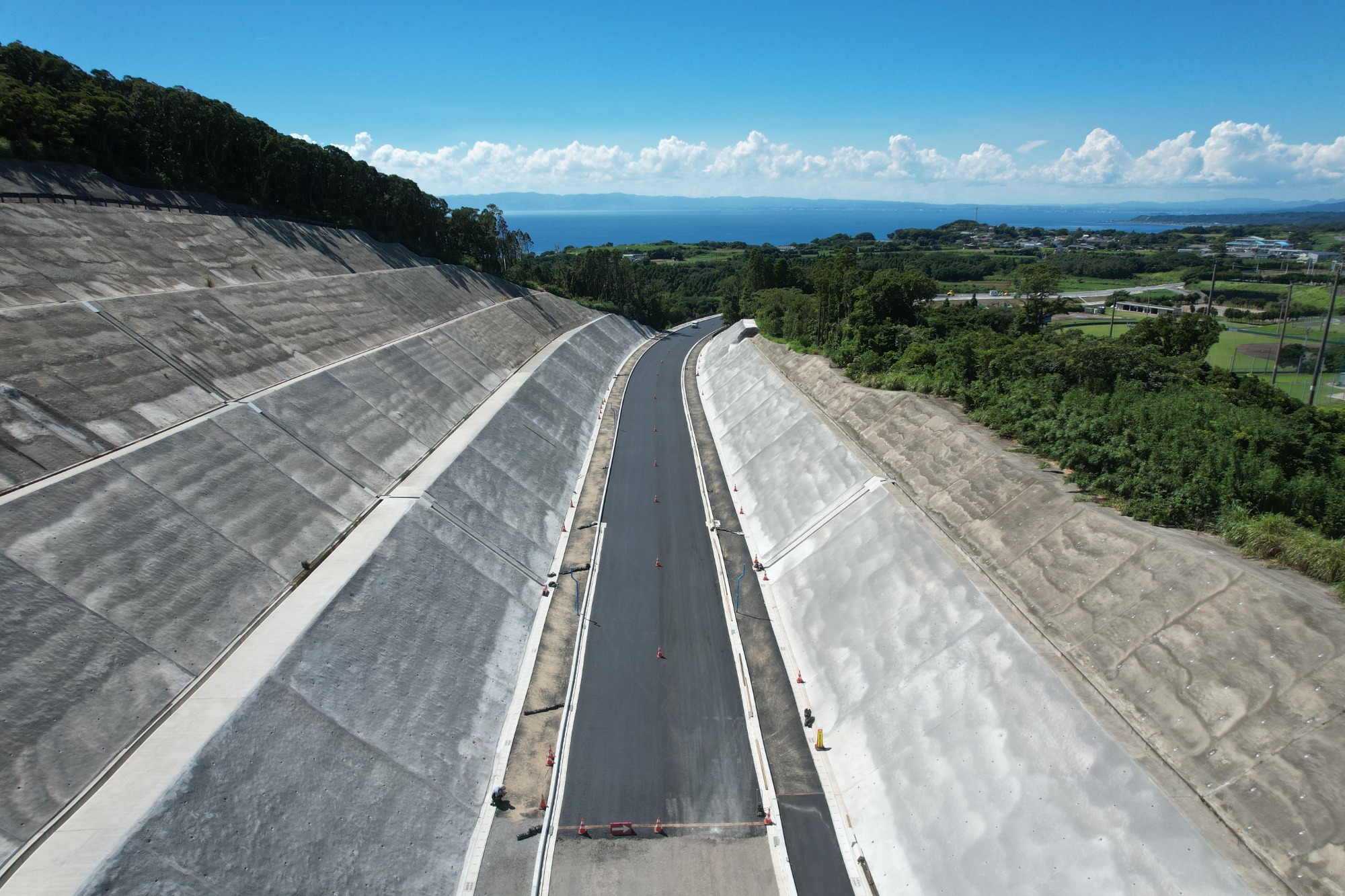 本工事は、現道部における急勾配、急カーブの古江坂の回避および、