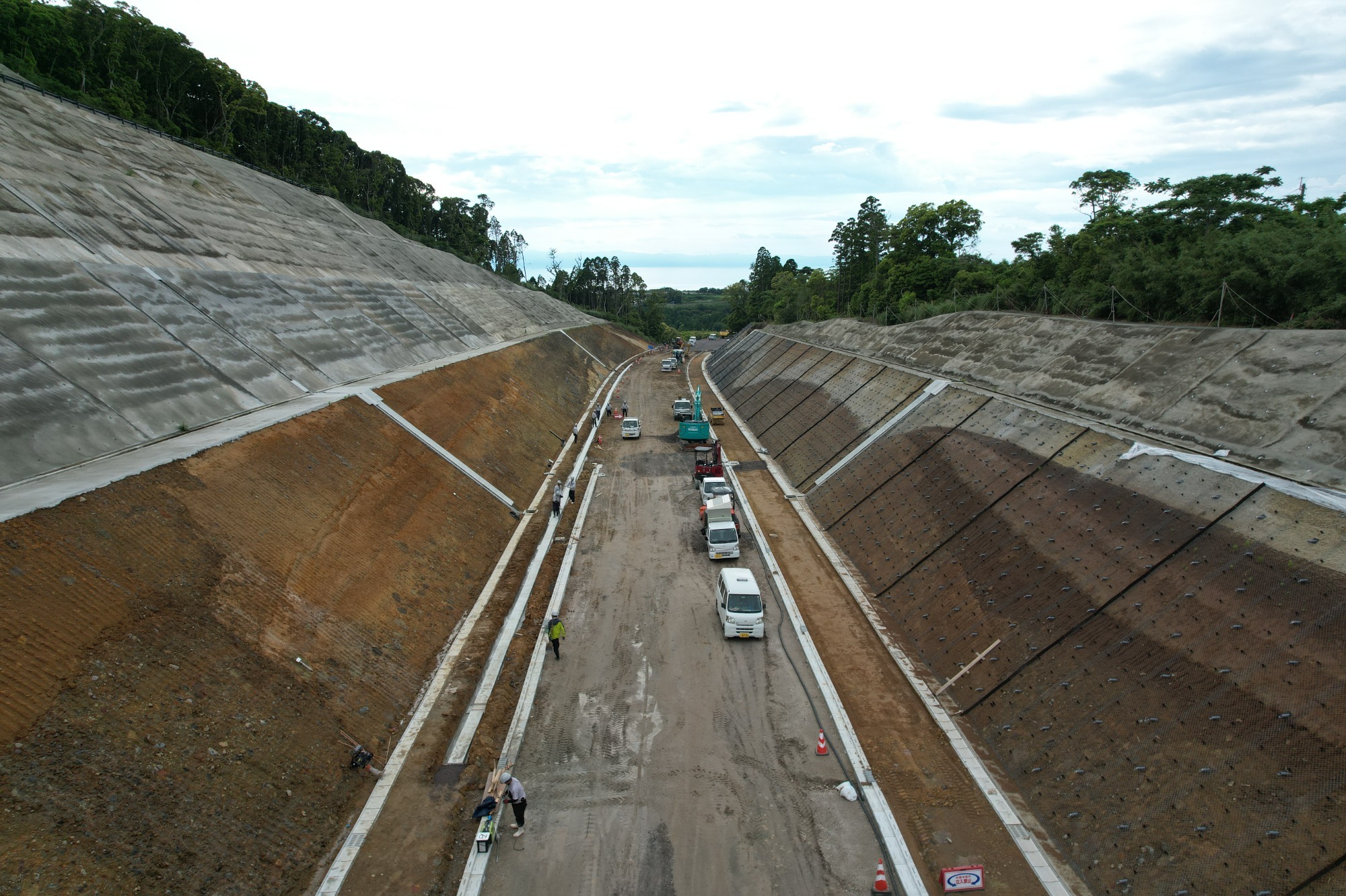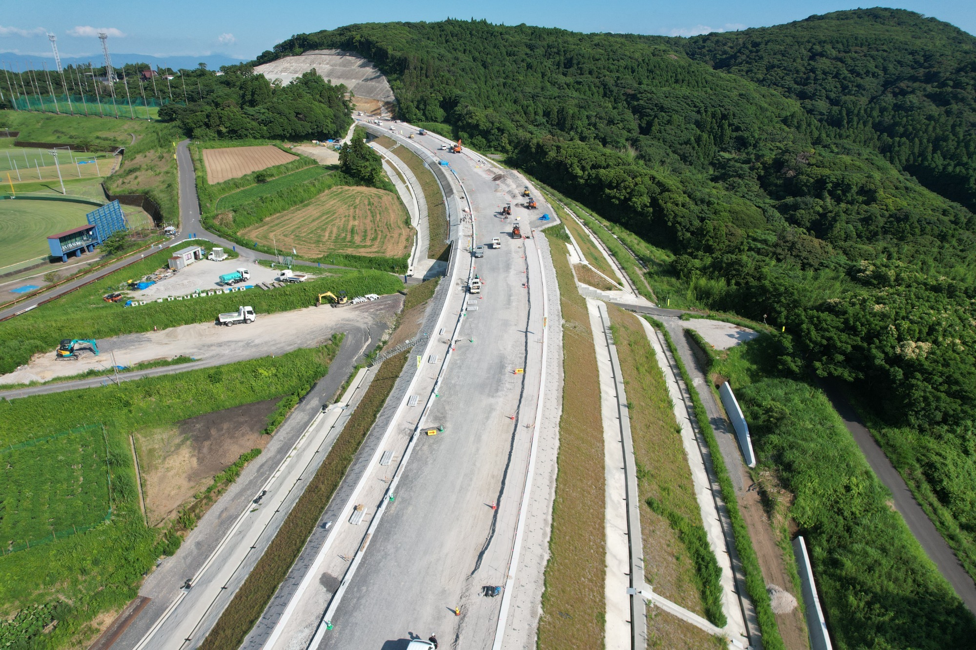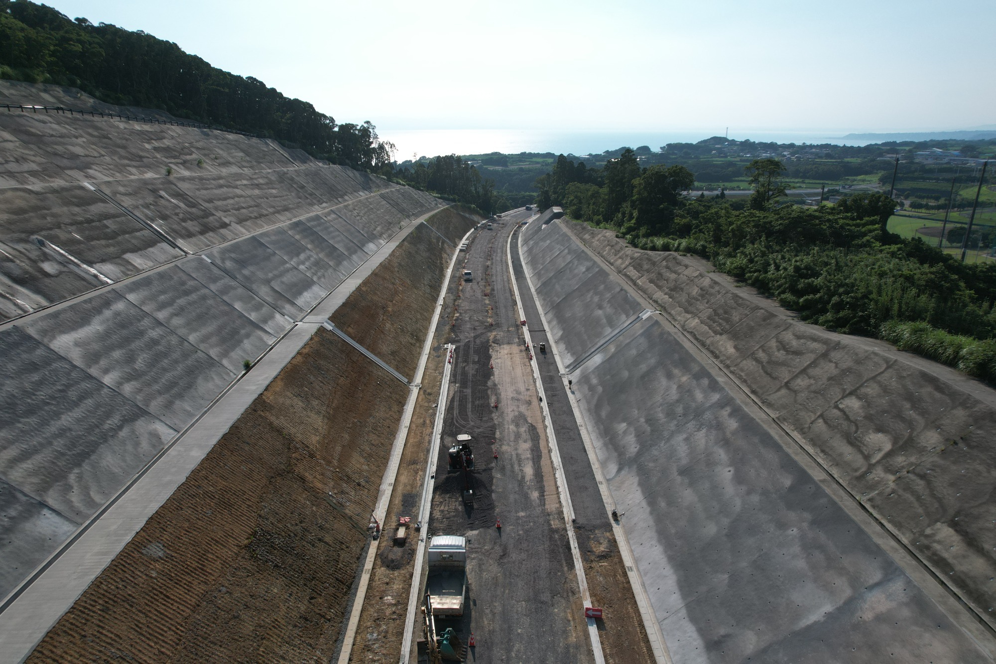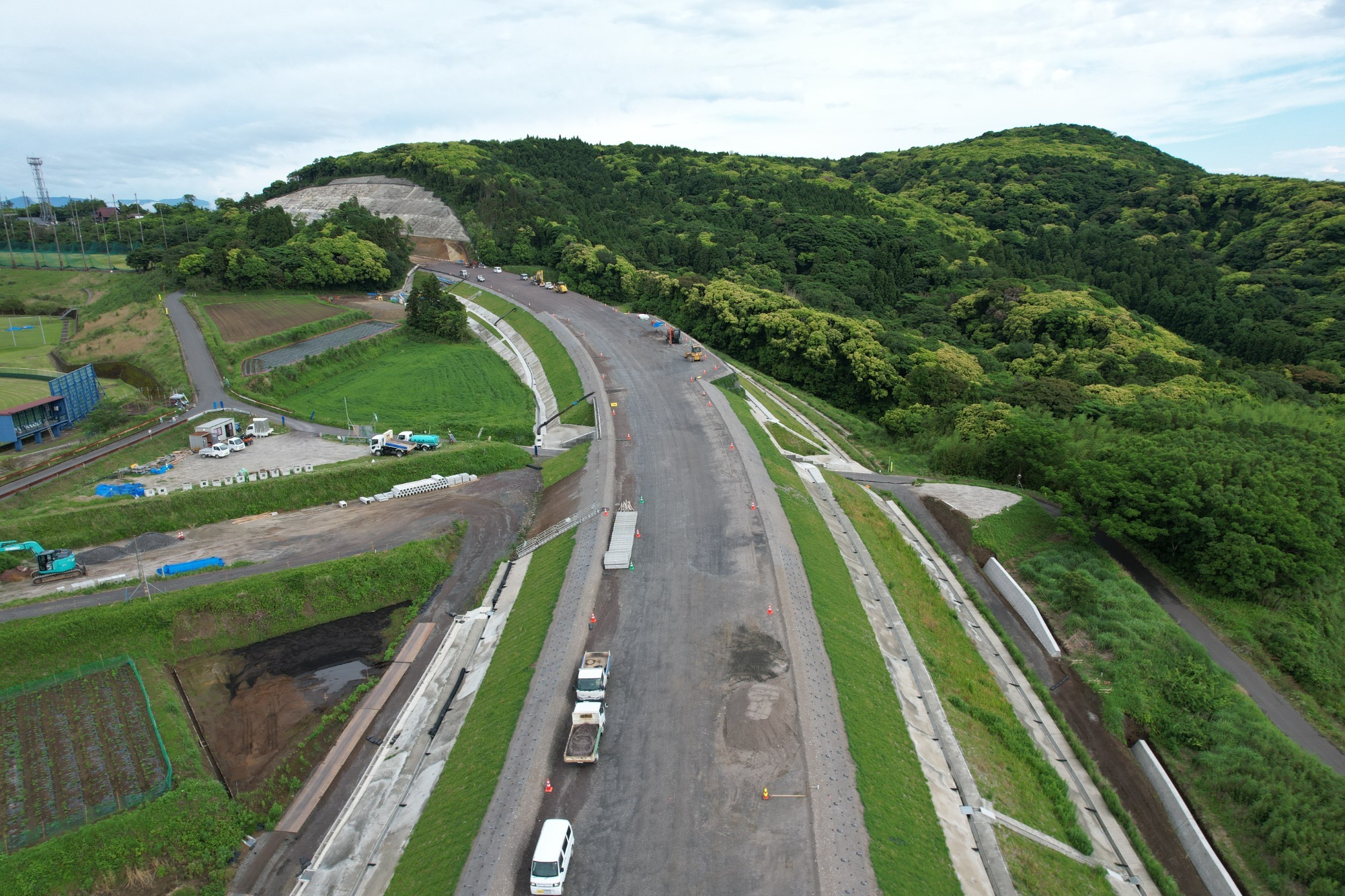 本工事は、現道部における急勾配、急カーブの古江坂の回避および、